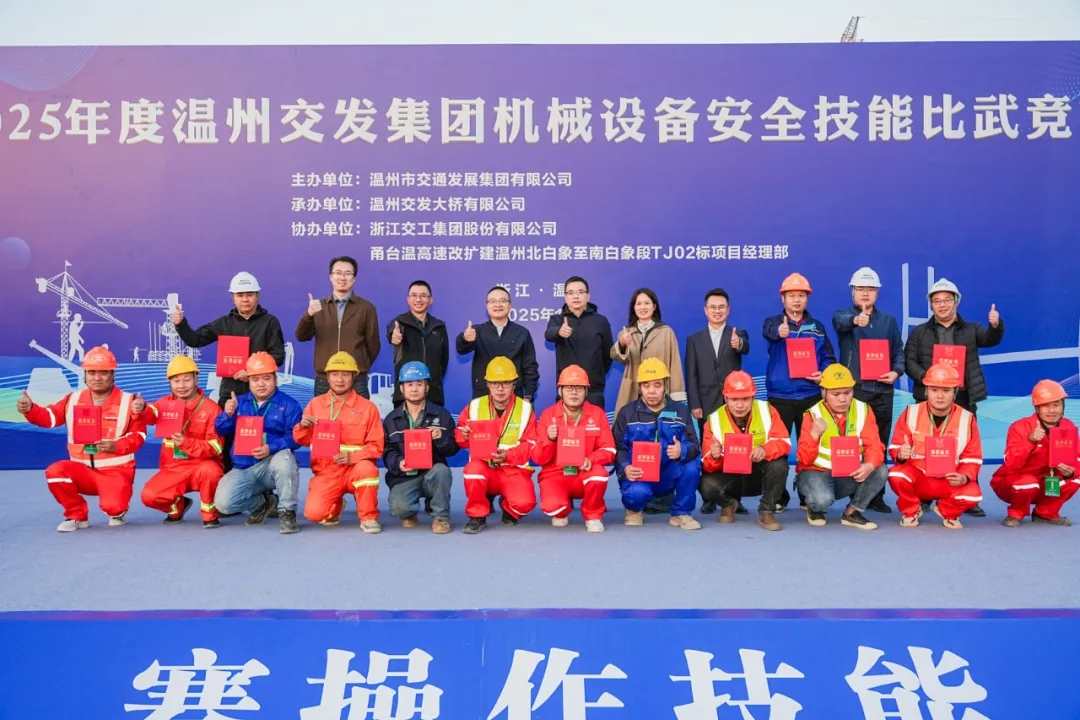 活动现场气氛热烈,参赛选手沉着应对。隐患排查环节,参赛选手细致排查、精准识别,不留死角;实操比拼中,选手操作娴熟、动作精准,展现出过硬的专业水准。观摩人员认真观看、积极交流,在互学互鉴中共同提升,展现了交通建设者勤学精技、奋发有为的良好风貌。根据比赛结果,甬莞高速洞头支线项目荣获团队冠军,参赛选手樊博博、隆涛、董森森、梁伟分别摘得汽车式起重机、铲车、挖掘机、桥式起重机四个项目的个人桂冠,展现出扎实的安全操作功底与精湛技能。
